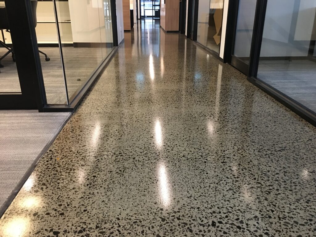 While both systems involve grinding the concrete surface, Grind and Seal differs from polished concrete in that it relies on a topical sealer instead of densifiers and extensive polishing.