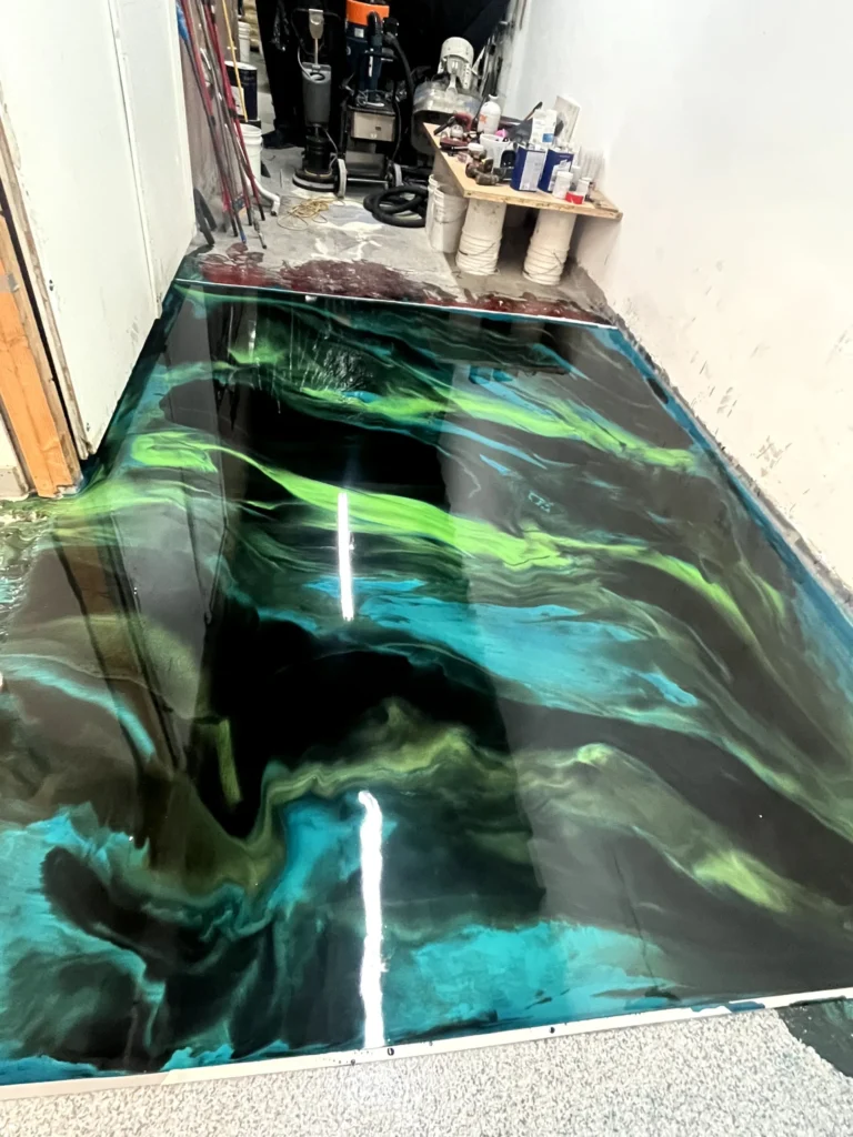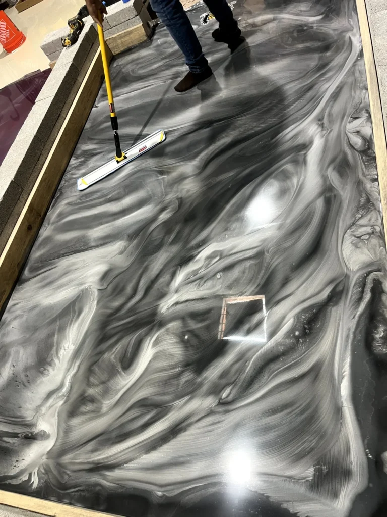 Each floor is uniquely hand-poured and manipulated using professional techniques to create depth, texture, and motion—no two floors are ever the same.